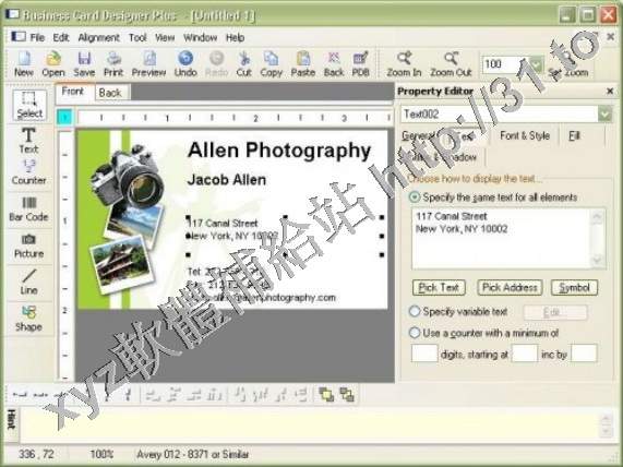 這是一個專業級而又使用簡便的名片及其它商業卡片的製作工具,可設計雙面或折疊