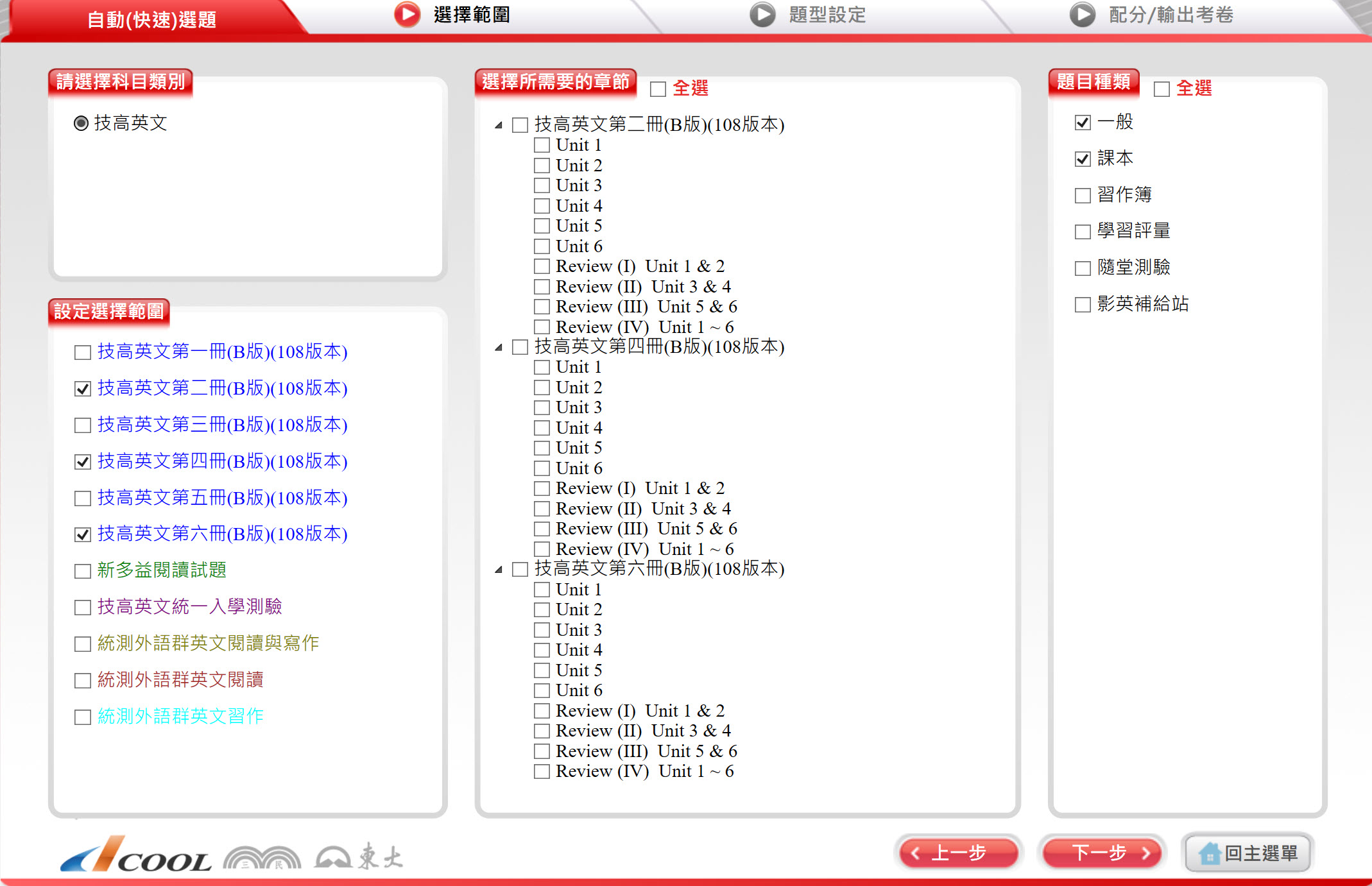 111學年下學期 技術高中命題光碟 三民東大版 英文科(B版 1-6冊)(108課綱) 題庫光碟
