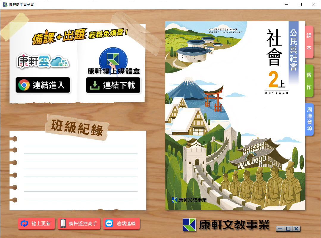 112學年上學期 國中 康軒版 公民電子書 2年級(含課本、習作含解答、教學資源)教學光碟