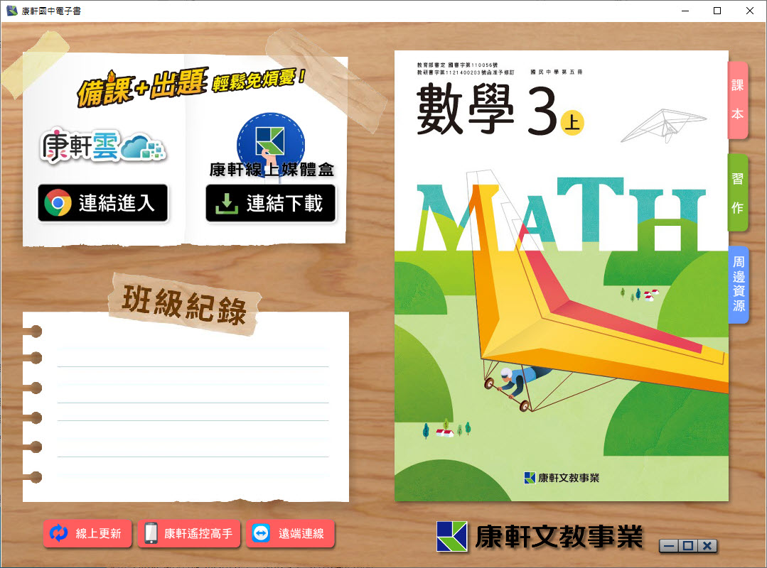 112學年上學期 國中 康軒版 數學電子書 3年級(含課本、習作含解答、教學資源)教學光碟