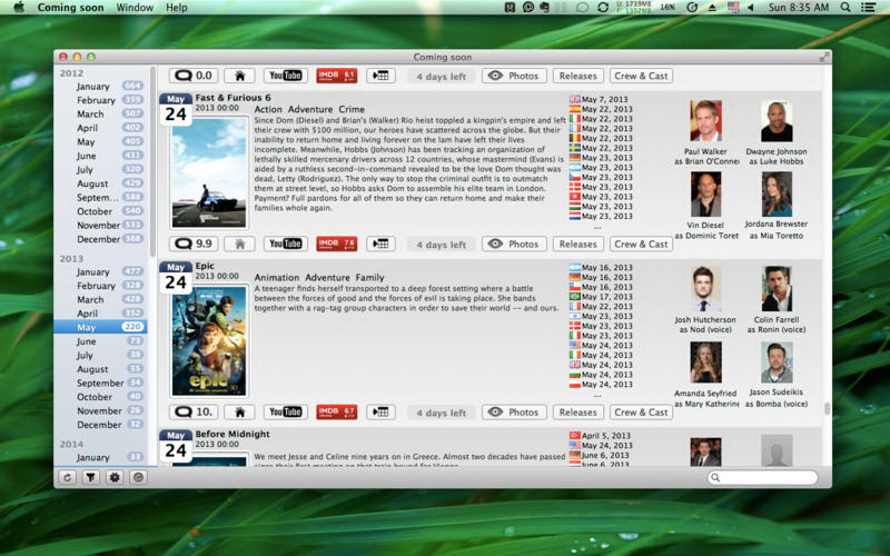 • Coming soon v1.1 MacOSX 英文正式版(獲取對即將上映的電影發行的最新資訊軟體)
