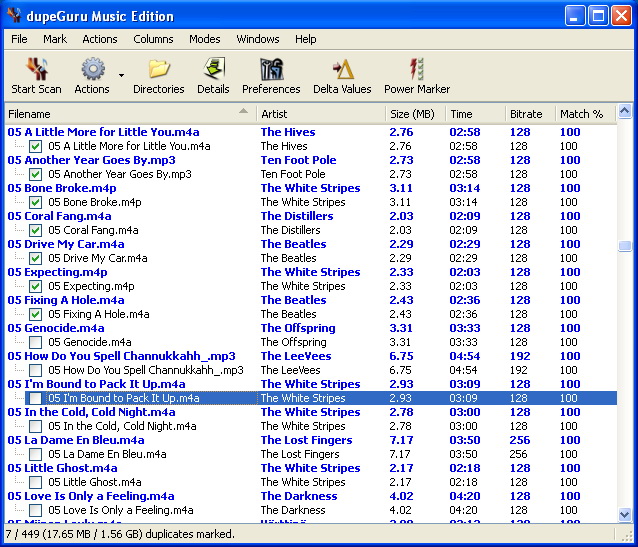 dupeGuru ME岩石。 支持MP3,WMA,AAC(iTunes格式),OGG,FLAC,AAC虧損和虧